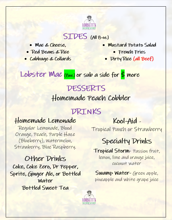 Pick (2) or double up catfish or shrimp) and served with (2) sides